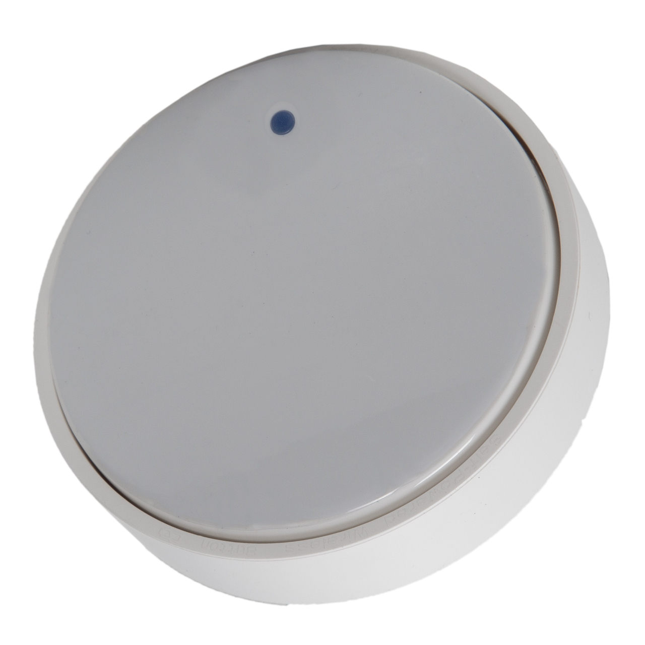 Управление происходит за счет беспроводной кинетической кнопки. Кнопка работает на пьезомеханизме, поэтому замена батарейки не требуется. Беспроводную кнопку можно приклеить в удобное или скрытое от детей место.