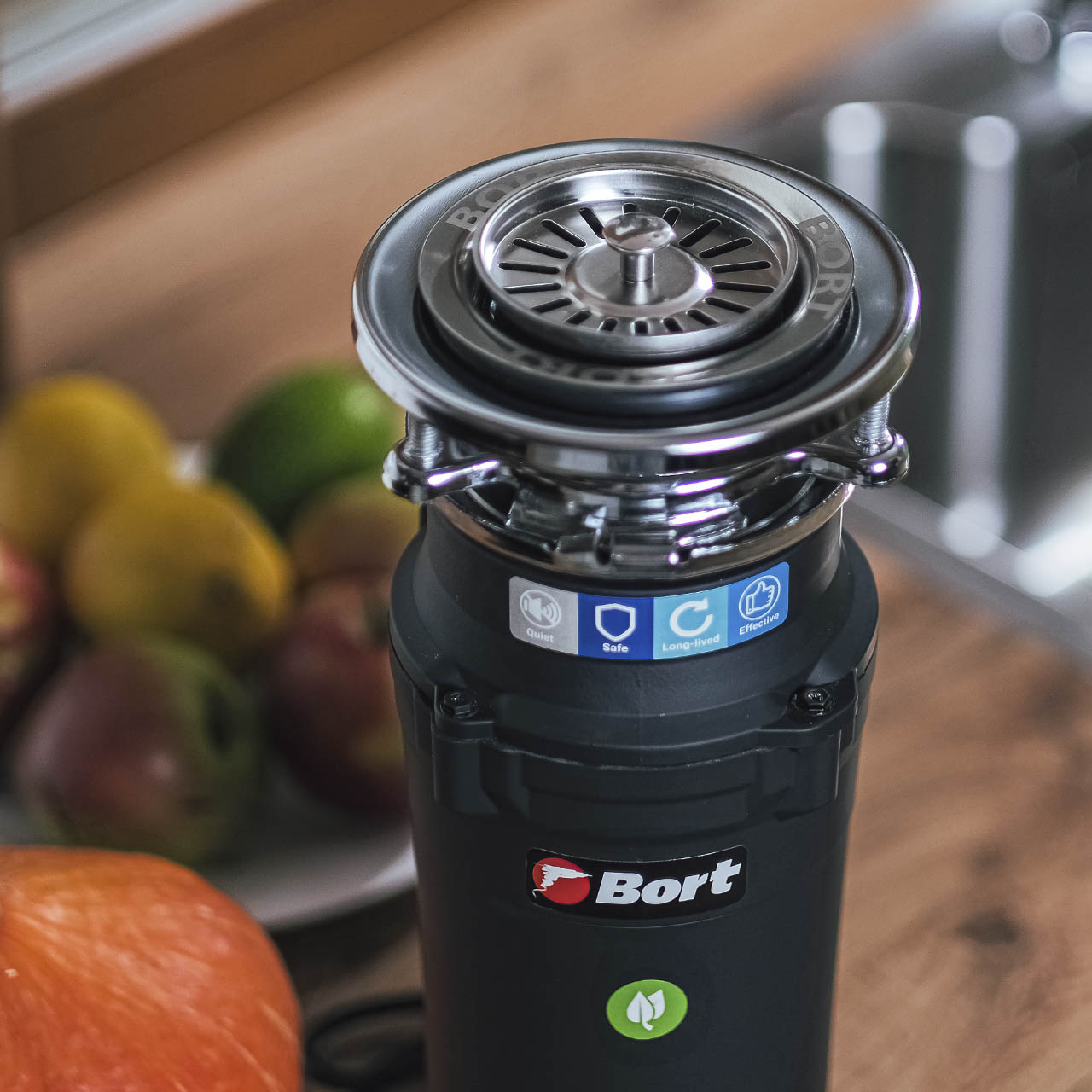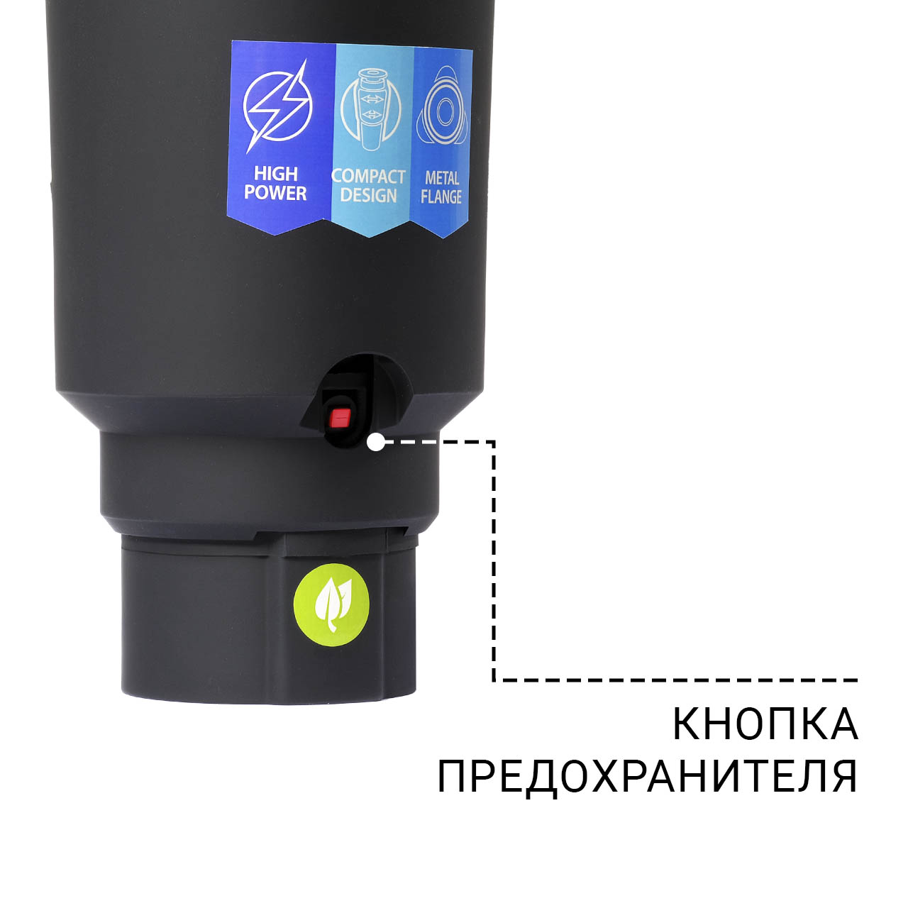 Корпус камеры измельчения выполнен из прочного композитного материала.Материал измельчающего элемента изготовлен из нержавеющей стали и имеет три ступени дробления, способен дробить даже кости!Попадая в измельчительную камеру, пищевые отходы разбиваются на более мелкие фрагменты, перетираются в водянистую кашу, которая легко и безопасно смывается в канализацию.