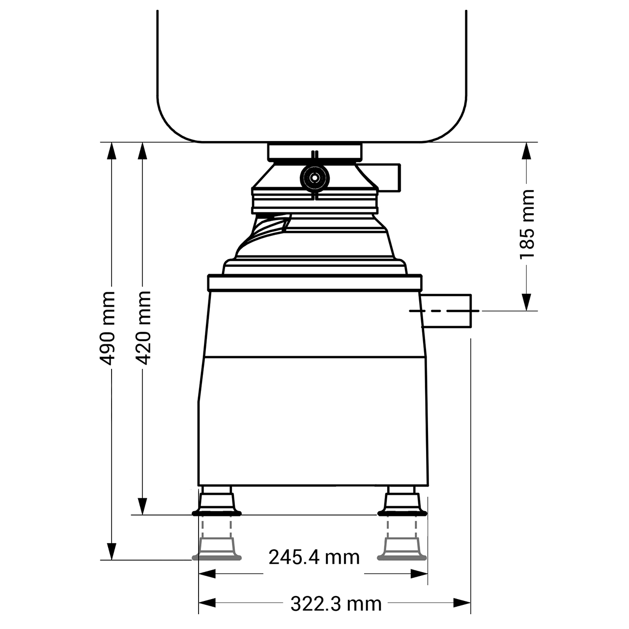 - Промышленный низкооборотистый двигатель (1.5 л.с.): Момент решает всё В отличие от бытовых измельчителей, которые используют высокую скорость вращения для дробления небольших порций отходов, Ultimate 1500 оснащен промышленным низкооборотистым AC-мотором. Что это значит? Это как сравнивать тяговое усилие трактора со скоростью спортивного автомобиля. Для непрерывной переработки больших объемов твердых, вязких и волокнистых отходов нужна именно колоссальная сила крутящего момента, а не скорость. Высокие обороты бытового прибора в таких условиях привели бы к «проскальзыванию» или мгновенному заклиниванию. Ultimate 1500 уверенно и методично «пережевывает» и «перетирает» любой объем, с которым не справится ни один бытовой аналог.