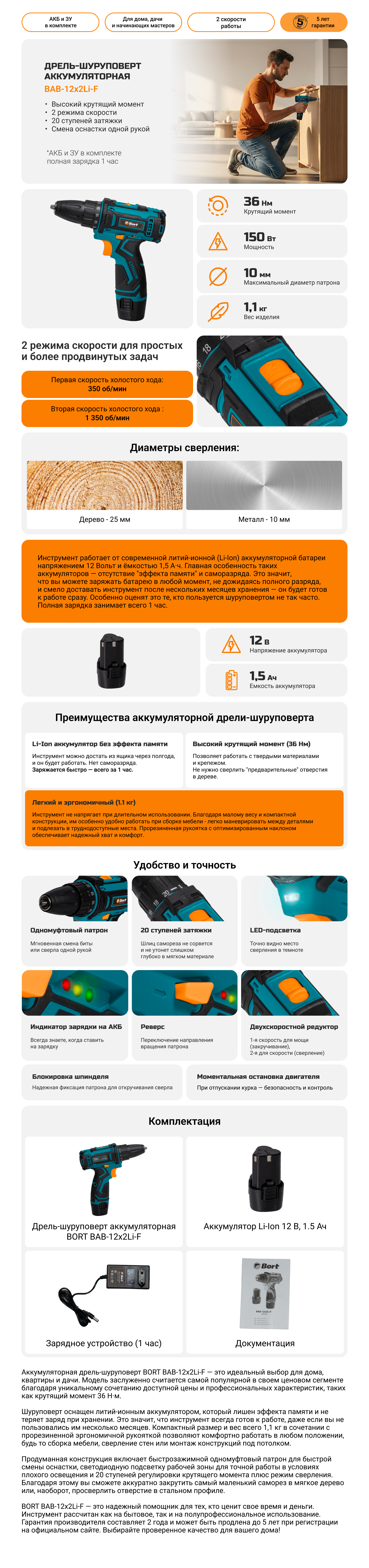 Увеличение срока гарантии не распространяется на аккумуляторы, зарядные устройства и принадлежности, входящие в комплект поставки. Выбор варианта регистрации поступен по ссылке bort.ru/EW