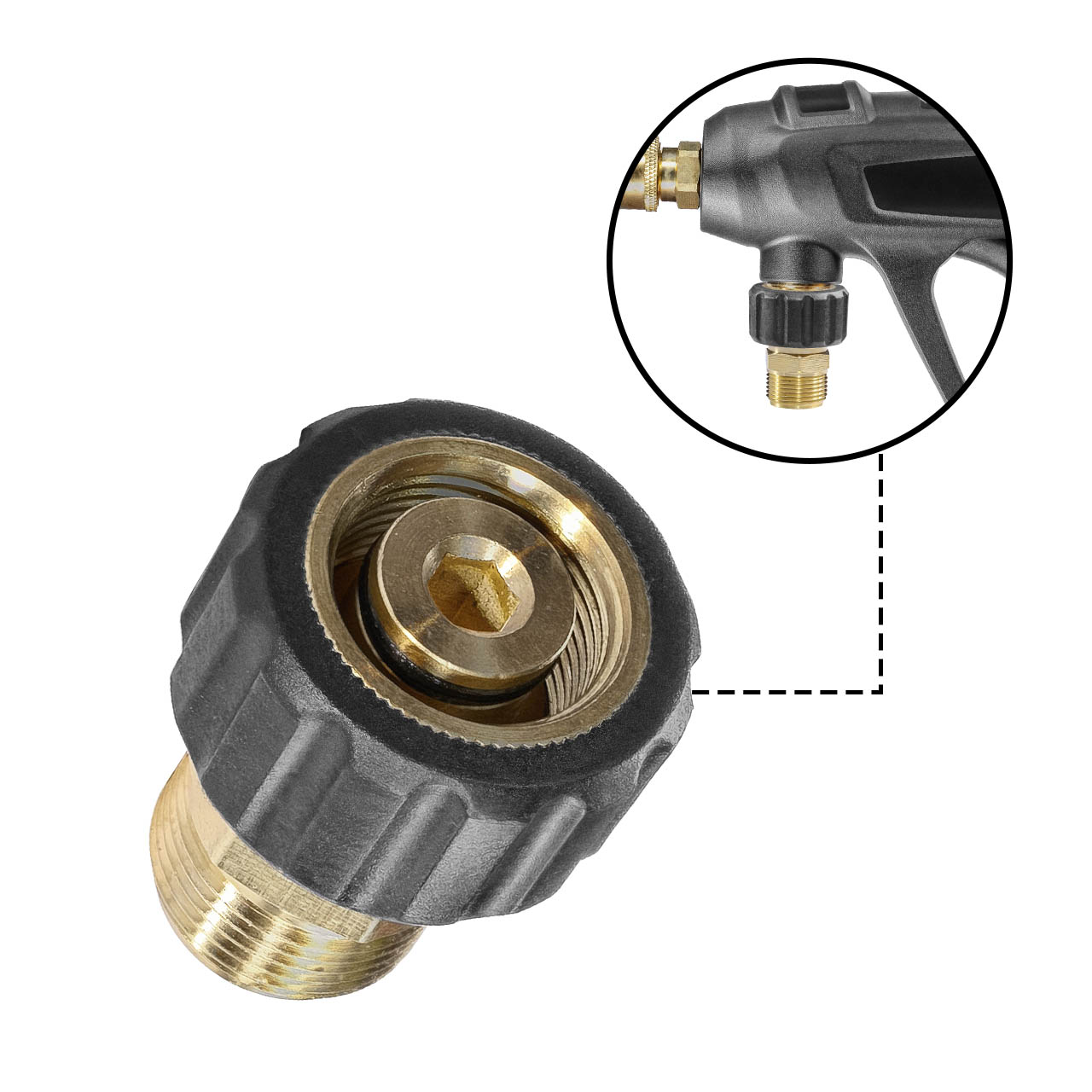 Компактный пистолет для моек высокого давления Bort. Подключается к шлангу резьбой М22х1,5, подключение насадок - стандартный QUICK FIX.