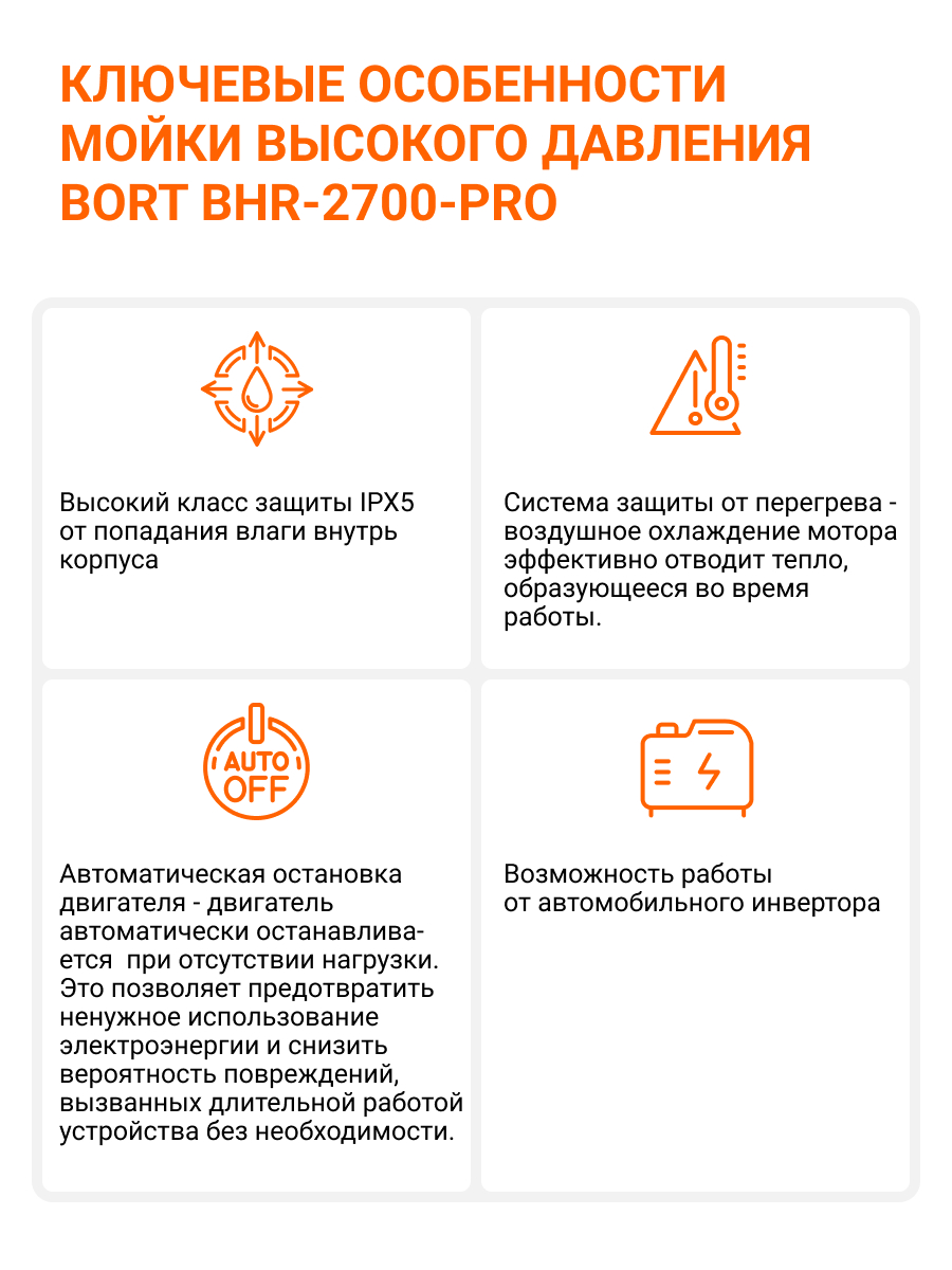 Мойки Bort – это надежное и качественное оборудование, которое полностью соответствует заявленным характеристикам производителя. Каждая мойка проходит тщательное тестирование и имеет соответствующую сертификацию компании INTERTEK TESTING SERVICES LTD. (https://www.intertek.com/certification/)