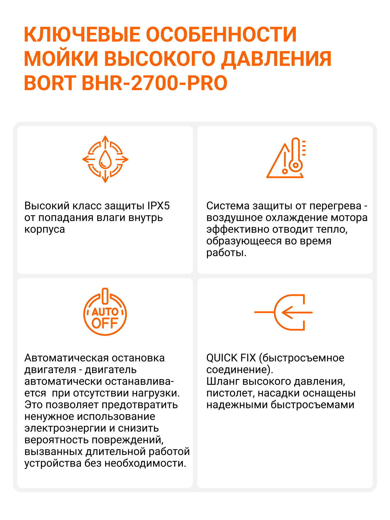 Мойки Bort – это надежное и качественное оборудование, которое полностью соответствует заявленным характеристикам производителя. Каждая мойка проходит тщательное тестирование и имеет соответствующую сертификацию компании INTERTEK TESTING SERVICES LTD. (https://www.intertek.com/certification/)