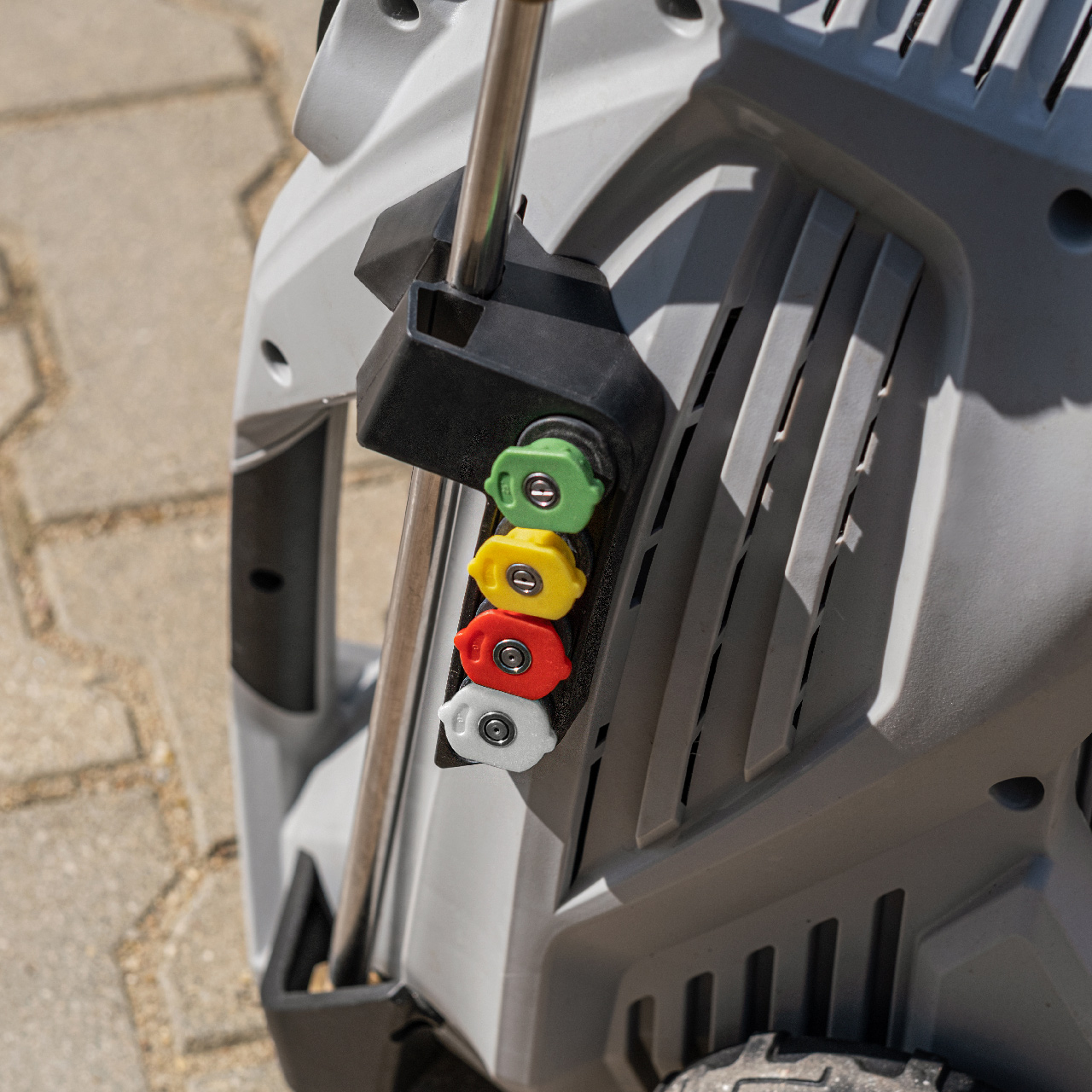Все насадки удобно хранить на корпусе мойки