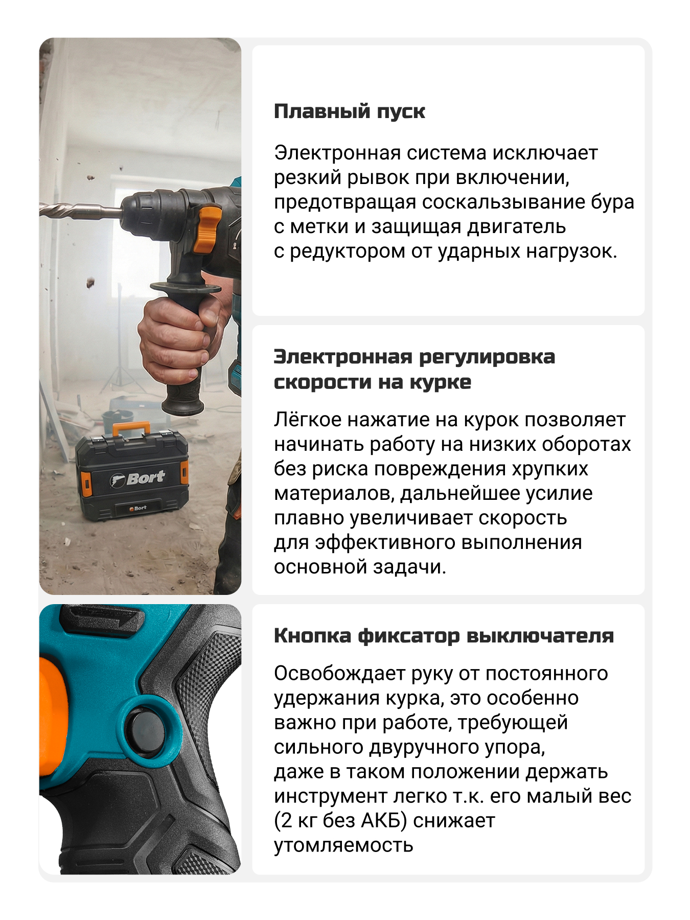 Увеличение срока гарантии не распространяется на аккумуляторы, зарядные устройства и принадлежности, входящие в комплект поставки. Выбор варианта регистрации поступен по ссылке bort.ru/EW